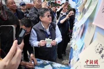 4月23日,台湾退役舰长吕礼诗在留言墙写下“两岸一家亲”的祝福语。张孝鹏 摄