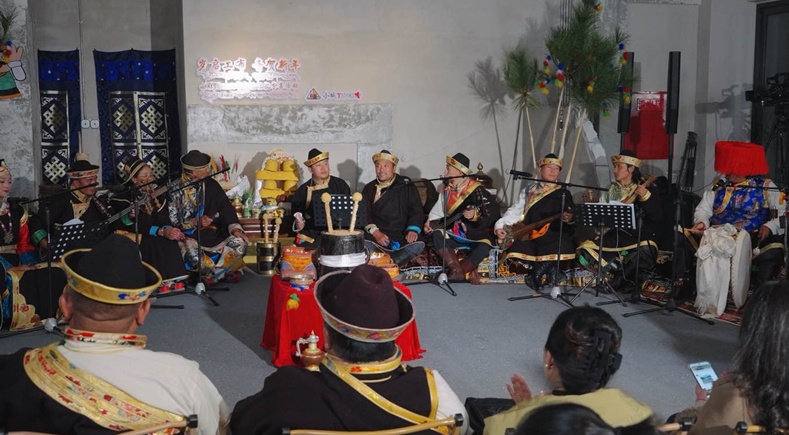 活动现场,朵热乐团倾情创编,通过“以歌为席”“以舞为戏”“以食为供”“以琴为乐”等核心篇章层层展开,紧扣工布新年主题与冬游氛围,观众身着工布传统服饰围坐,舞台陈列新年供品与特色手工艺品,灯光烘托出温暖祥和的冬日气息。活动伊始,演员重现工布新年初一祈福仪式,让游客直观感受高原冬日的节日温情。